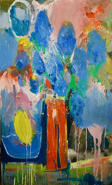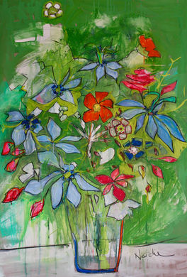 Florals are a delightful distraction. I find so much character and colour in them, and they are a wonderfully forgiving subject. Usually anchored in a jar or vase, flowers liberate me to use vibrant colour and layer different media, allowing me to create pieces that are joyful.