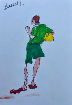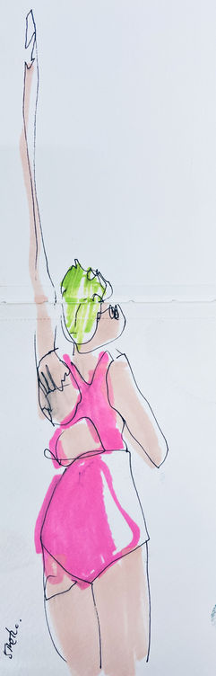 I draw swimmers gathering with bright floats, lifeguards watching over us, and friends wrapped in dry robes, sharing their stories. This place offers joy, achievement, and a sense of safety. My drawings reflect the rhythm of the quarry — a space where worries are left behind and life is gently observed.
